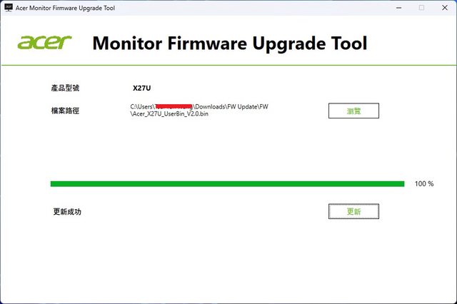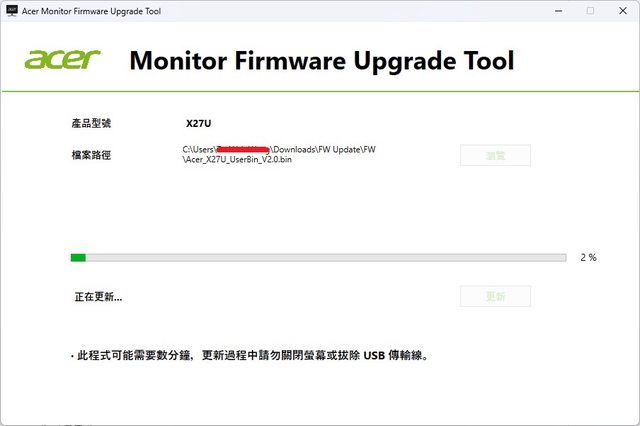 Acer有提供更新工具,必須先用USB纜線連接螢幕和電腦才能執行更新
