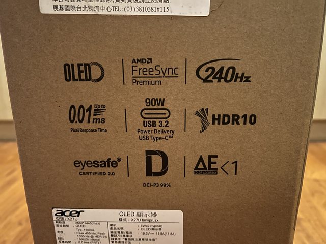 標題: [開箱] Acer OLED X27U副螢幕開箱及小小測試心得