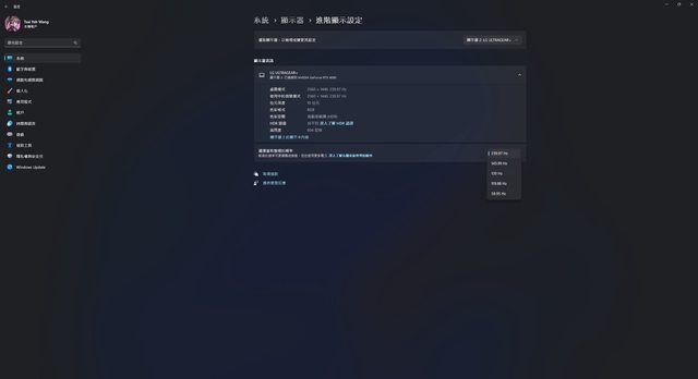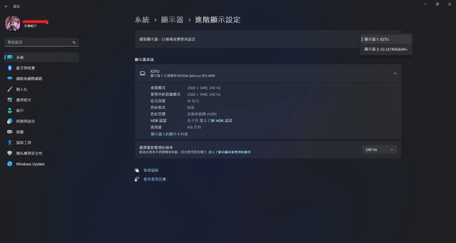 X27U在DP 1.4可顯示1440p/HDR10/240Hz