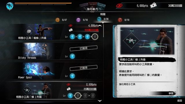 每樣小工具都有不同的等級,可委託某位武器職人進行升級強化。例如提升「蜘蛛」的等