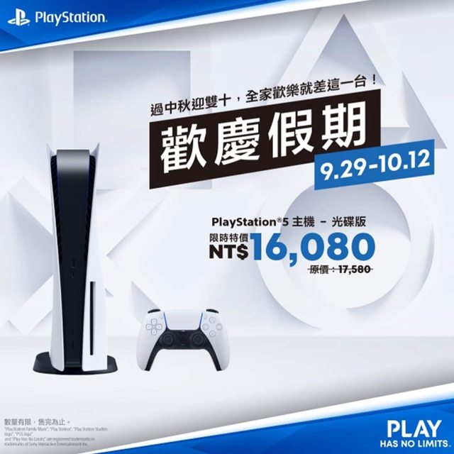 < 慶佳節 > 限時優惠,再一波。 準備迎接秋、冬季大作潮!「PS5主機優惠活動」即日起至10月12日於指定經銷商限時登場 。 指定授權經銷商 https://siet.pse.is/56kvh2 #PlayStation5 #PS5 https://i.imgur.com/d1RfYhg.jpg