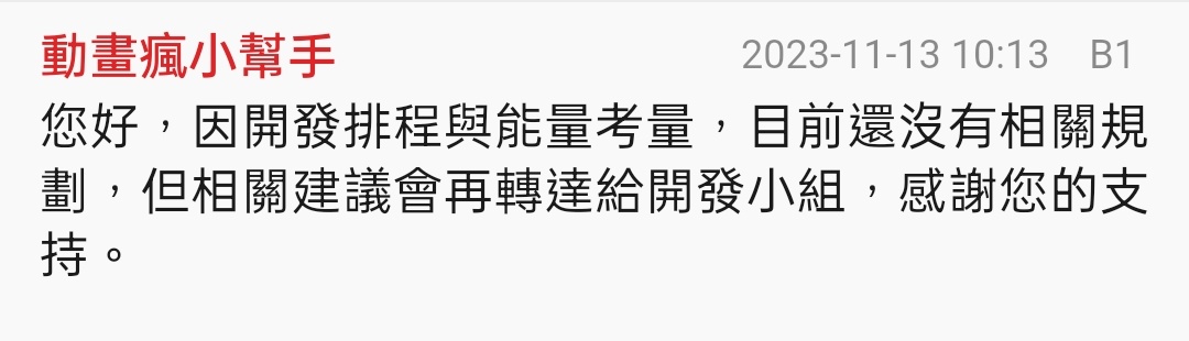 allen0205: 動畫瘋要問巴哈,以前問是說沒打算做ps的程式 11/18 11:10