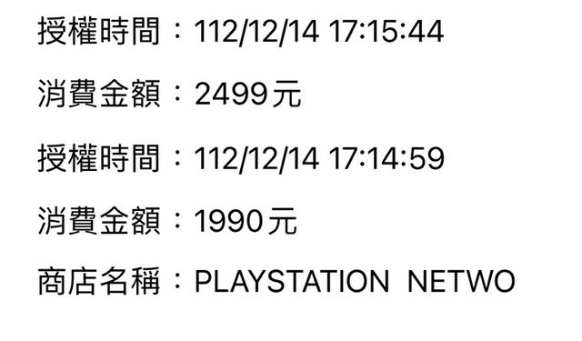 → asubelieve: Psn帳號通知盜刷的7款遊戲是否po給大家看一下? 12/27 15:47