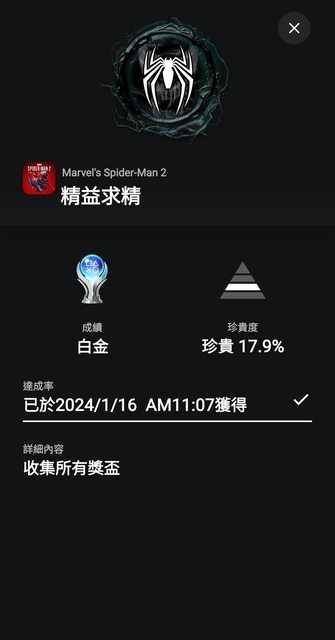 人生第二個白金獻給蜘蛛人 總時數不長,白金算簡單,照提示做都可以,找蜘蛛機器人比較麻煩而已,但也不難,我全 破後沒用最難再破一次 缺點就是各式 BUG和劇情,3A 大作還有這種 BUG,真的... https://myppt.cc/gc5nP https://myppt.cc/2g7hh https://myppt.cc/3vJBk 不是破圖就是對話按鈕感應不到,都要重打或關遊戲重來一次 題外話,劇情真的吐嘈點太多了,劇情女主最後拿音波槍是一槍一個,但兩個蜘蛛人卻還是 噴加打,那幹嘛不改造裝備?而且有看過電影功夫的人,都知道包租婆用一個大喇叭直接將 獅吼功等級拉滿,相對,明知猛毒的弱點是鐘聲,幹嘛不直接改裝一個大喇叭結束它就好? 總結來說優點多於缺點,比一代和麥爾斯多了很多東西,尤其是快速移動,真的很屌,零載 入,且畫面是接的上的,畫面流暢感很足,這遊戲不用收藏,但真的強烈建議一定要玩一次 -- ※ 發信站: 批踢踢實業坊(www.ptt.org.tw), 來自: 111.82.89.174 (臺灣) ※ 文章網址: https://www.ptt.org.tw/PlayStation/M.1705478375.A.ADA