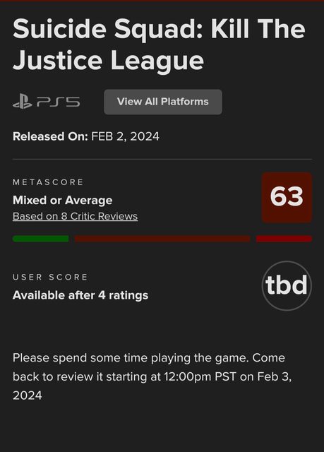 因為他們不提供媒體評測,所以目前只有8家評測 基本上就是炸裂 劇情一塌糊塗,不如9年前阿卡漢騎士的畫面,無聊的服務型打寶遊戲,基本上就是一坨 垃圾 鯊魚王跟迴旋鏢隊長都拿槍,劇情爛到yt上面都在噴 基本上可以把他當成DC的10/10,他還是阿卡漢系列的正統續作(使用阿卡漢騎士的世界觀 延續 論劇情,上次的高譚騎士劇情都可以把這款壓在地上摩擦(有人想知道劇情我在暴雷 基本上這系列就是死了,除非重啟,華納又把牌打爛了,看來去年的霍格華茲的傳承讓他 們得意了,這狗屎的劇情居然可以讓他過!? https://youtu.be/iocRbdvUgJ4?si=DZHIFinFmDI1k8jQ