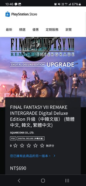 推 sniperex168: 含DLC的FF7R PS5版是在「PS+升級」遊戲目錄中,不是 02/16 16:18