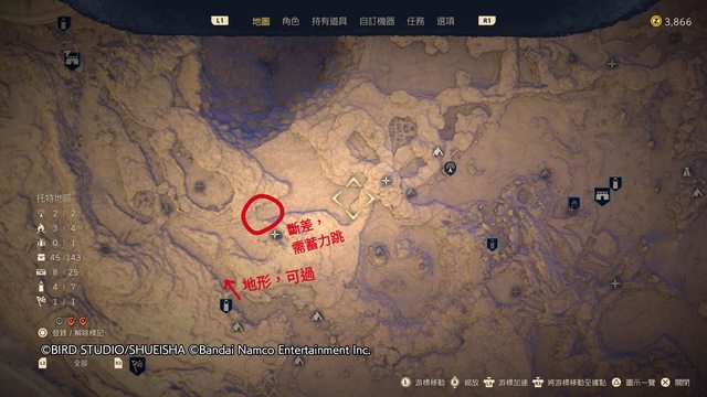 有些地方有斷差,蓄力跳在沙漠樂園主線完成後才會解鎖,中途跑圖的時候要稍微注意一下