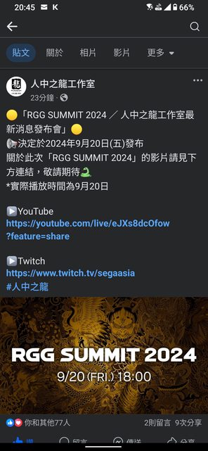 推 bamm: 還有前陣子SEGA有註冊一款如龍戰爭的標題 08/29 16:19