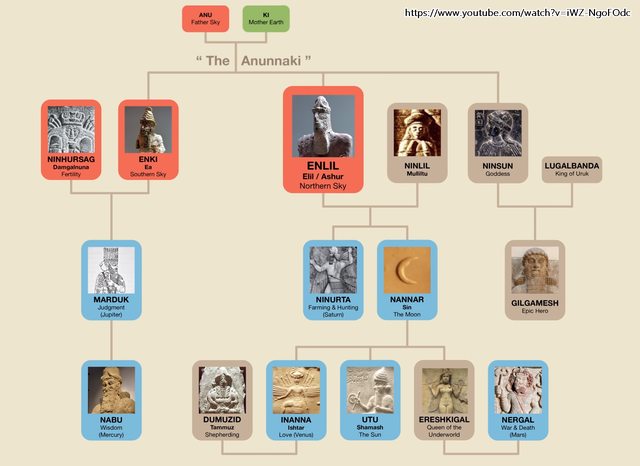 ▲美索不達米亞神話的主要神祇們(紅底為四主神,藍底為七位與行星有關的神祉)