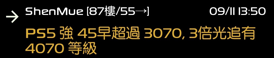 推 ShenMue: 你沒根據 怎麼知道 PS5 三倍光追沒有到 4070? 09/12 01:08