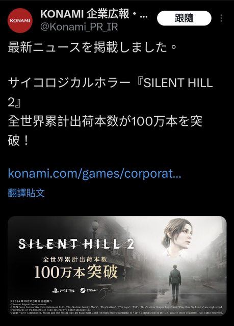 推 rahim03: SH2原版首月百萬時是日本美國歐洲 其中歐洲就35萬了 10/17 14:04