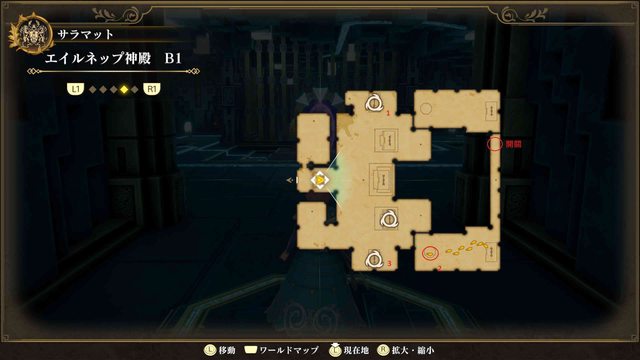 エイルネップ神殿:先按下所有看得到的開關,從1傳到2後鑽牆壁到圓圈處有開關,按了