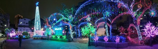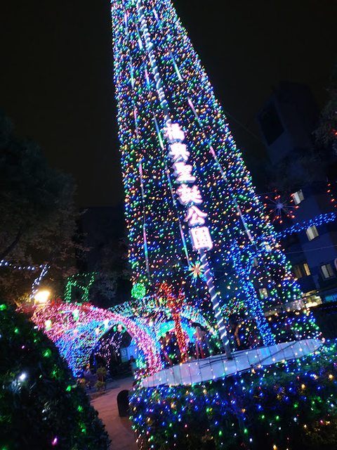 這座公園最令人印象深刻的是在聖誕節的時候,會點綴上滿滿的燈飾,充滿濃厚過節氣氛