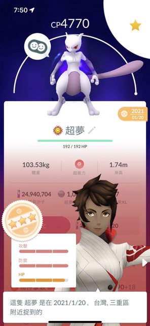 也在這一次的超夢復刻,順利讓他上去50等,其實老婆身上原本也就有一隻IV100超夢了,最