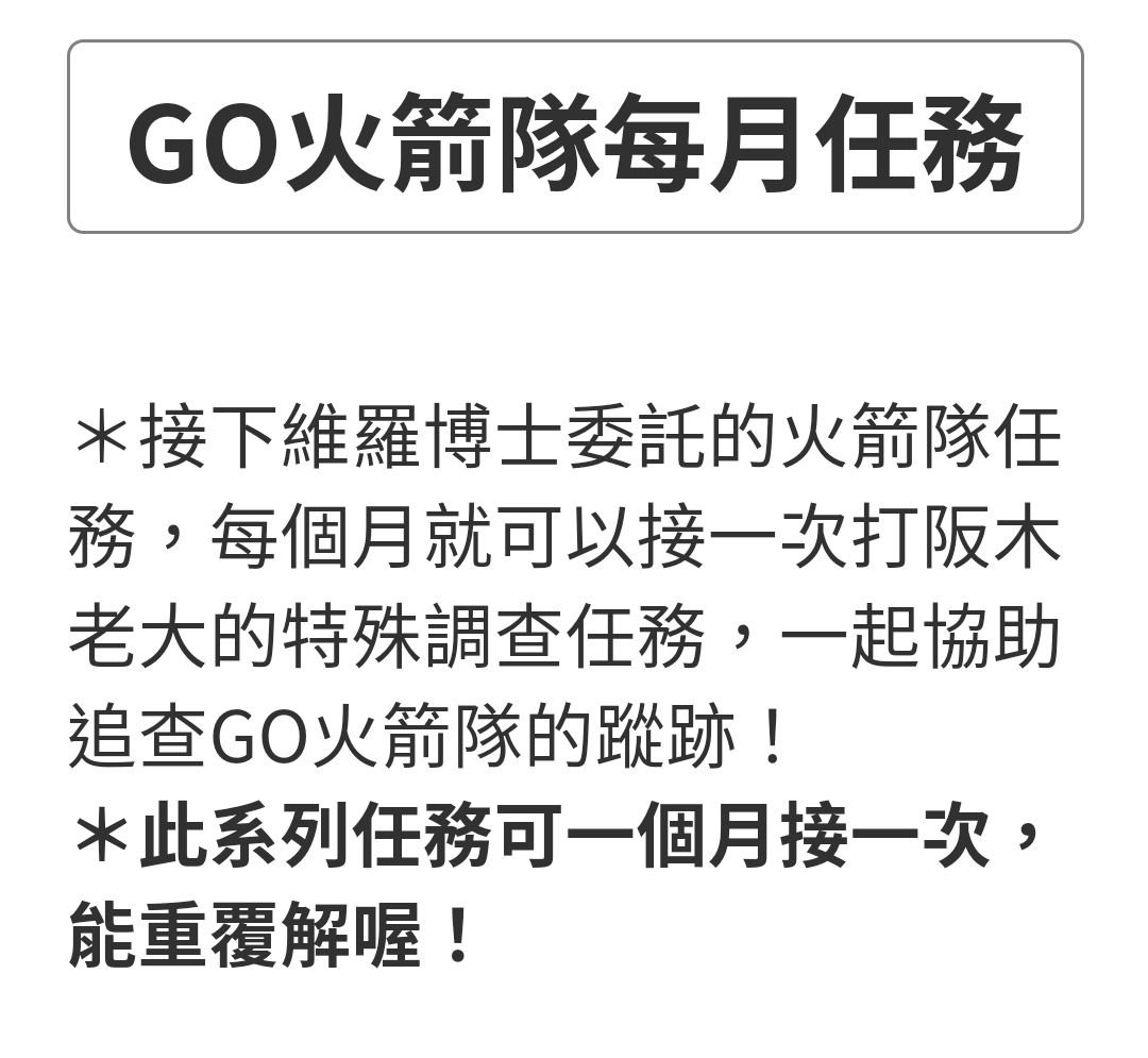 推 jarviswang12: 為何領不到火箭隊的任務啊,是之前的火箭隊要先破 11/14 19:33