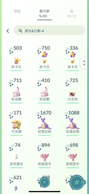 尚未開圖色違:大舌貝、懶人獺、櫻花寶、紫色氣球飛翔皮卡丘、紫色T恤皮卡丘、S未知、I未知、N未知