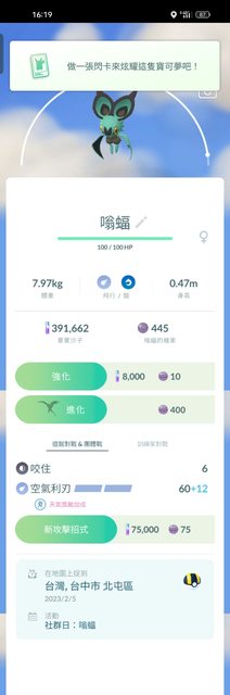 歡迎您於今天「嗡蝠社群日」有抓到"異色"或100iv等,歡迎推文曬出自己有多歐吧~