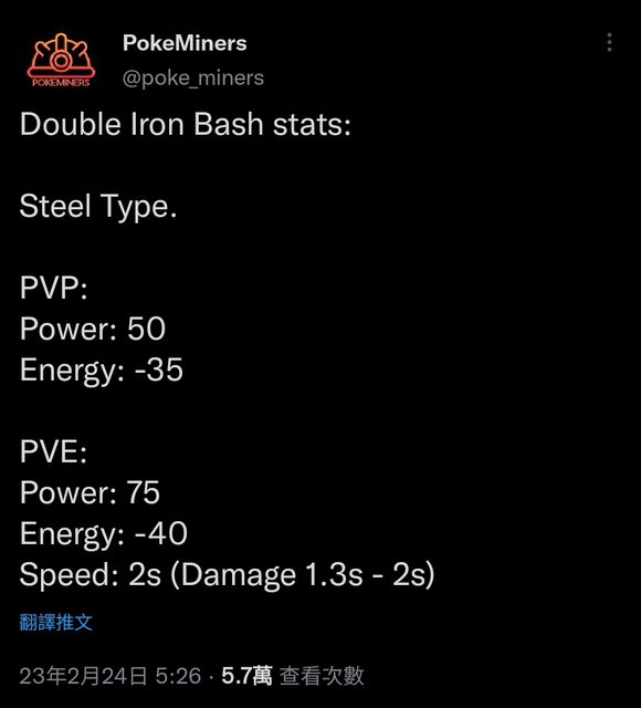 推 HsuTW: pvpoke還沒更新,只能用泰山壓頂跑跑看,看來有機會打贏蒼 02/24 08:46