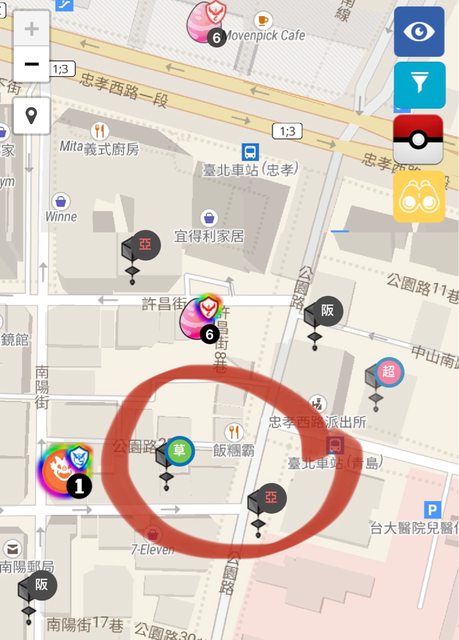今日(4/18)中午12:30左右在公園路麥x勞附近兩個補給站灑黃金誘餌