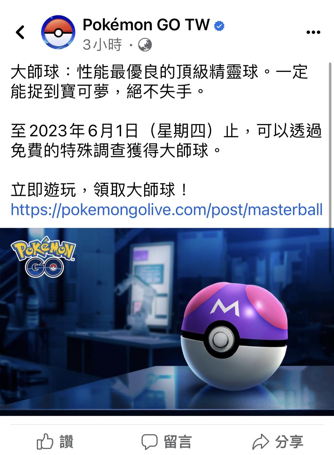 推 Kbart: 目前猜測博士卡快一個月的那個任務最終獎勵就是大師球,至 05/18 00:11