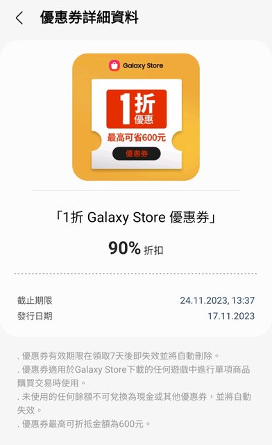 → bmw3633: 三星使用條款不是有講 同一台手機/或帳號限領取一次 11/18 09:34