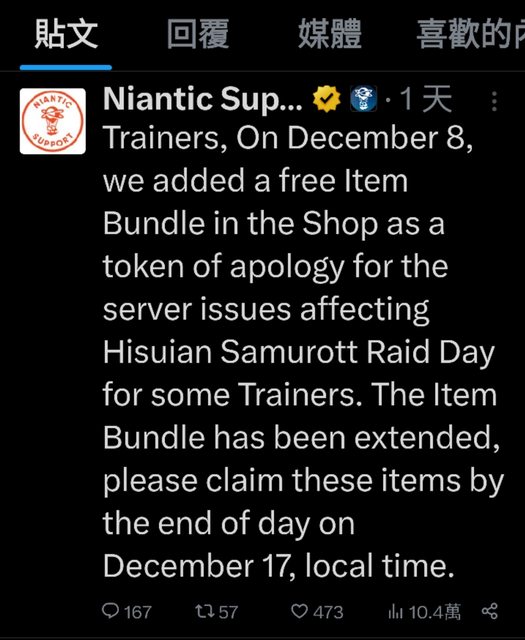 https://twitter.com/NianticHelp/status/1734409321310535984?t=JJZi8d6er-T3EKcFz