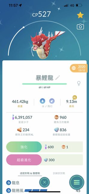 大家分享自己身高最「高」的「色違暴鯉龍」