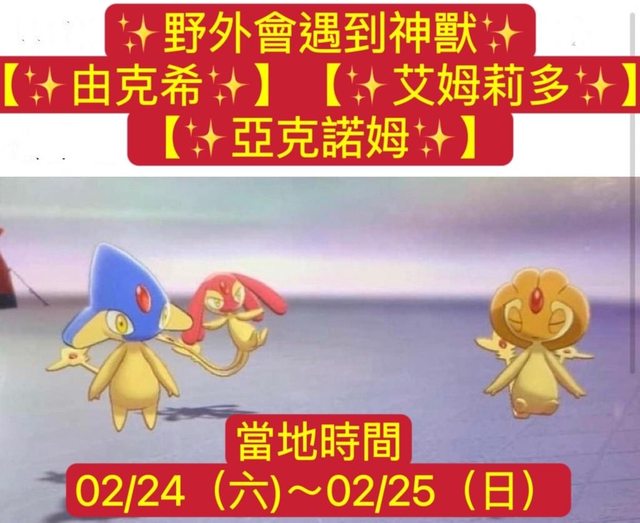 推 gottsuan: 我遇到野生色違尤克西 一球跑… 02/25 16:39