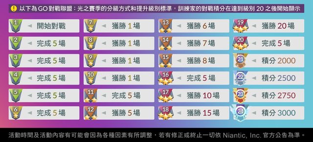 在賽季期間,根據下圖顯示級別的不同,你可以遇見下列寶可夢作為獎勵。