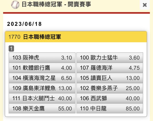 標題[棒球] NPB 日職 2023 總冠軍預測