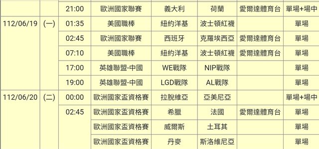 標題[情報] 112-06-18 19單場場中