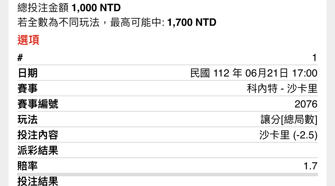 → WinTWD: 就是選賠率相差不近的 39.14.1.120 06/21 17:26
