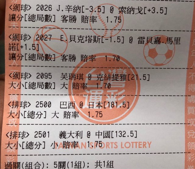網球部分全都跟著數字莊家走
