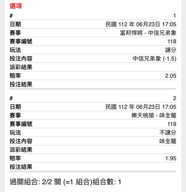 ※ 文章網址: https://www.ptt.org.tw/SportLottery/M.1687510132.A.C3B
