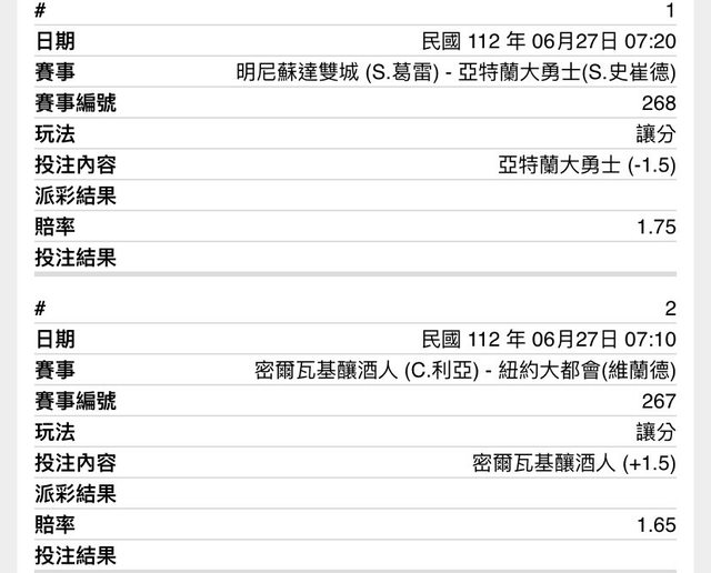 ※ 文章網址: https://www.ptt.org.tw/SportLottery/M.1687786032.A.DFA