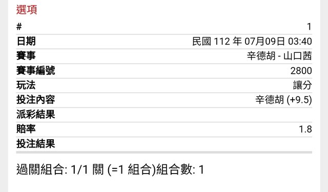 ※ 文章網址: https://www.ptt.org.tw/SportLottery/M.1688844769.A.6CA