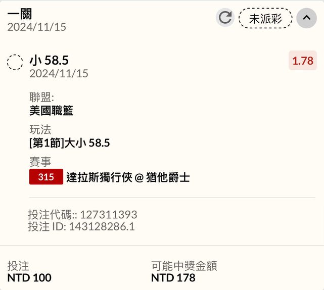 ※ 文章網址: https://www.ptt.org.tw/SportLottery/M.1731605355.A.753