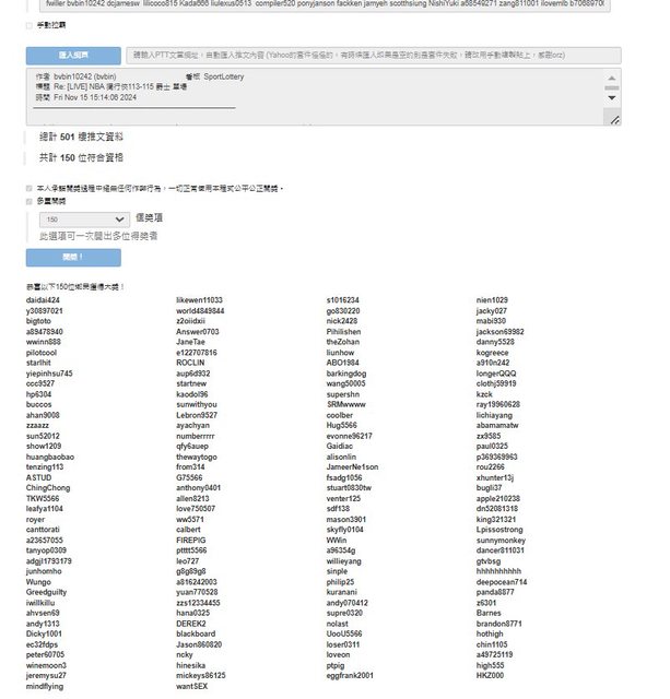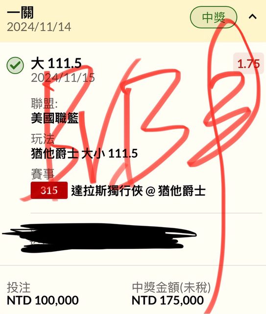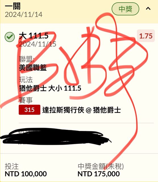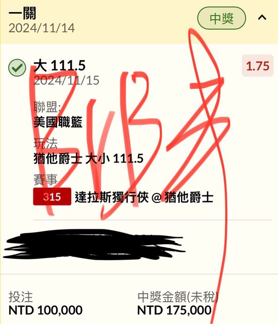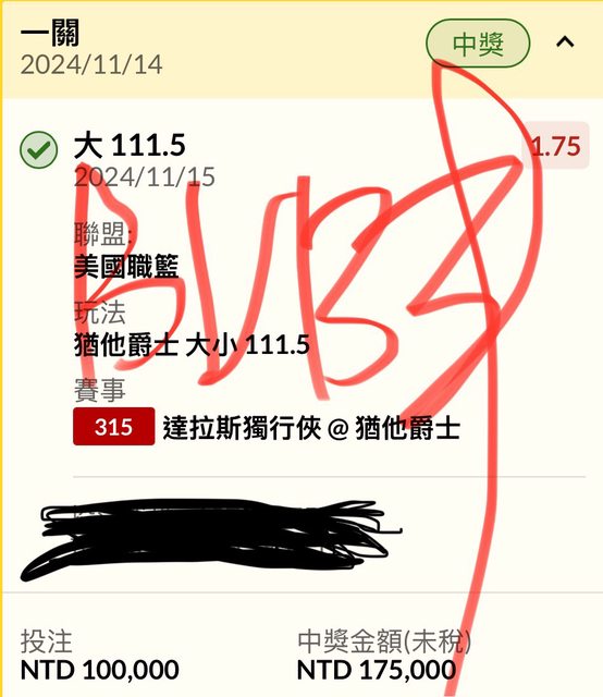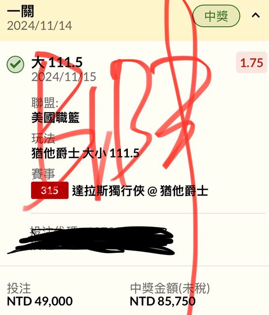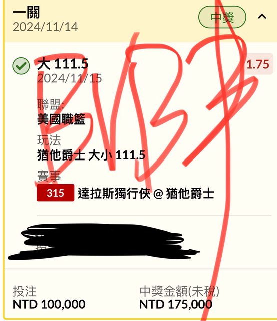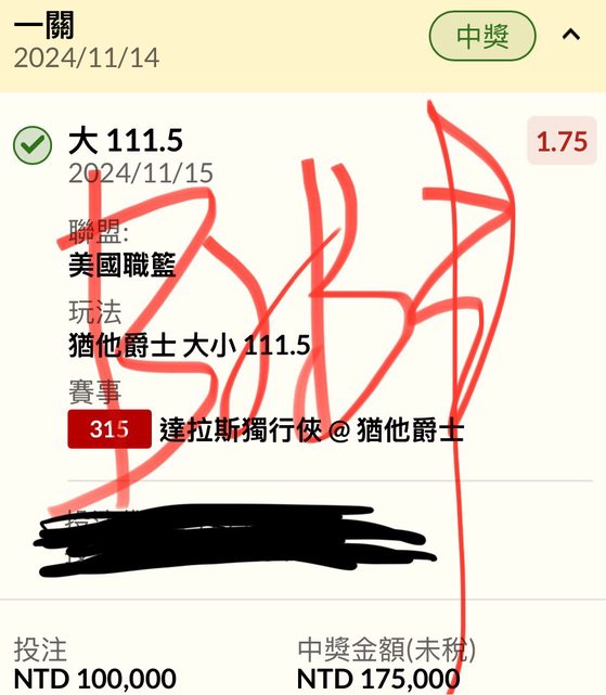※ 文章網址: https://www.ptt.org.tw/SportLottery/M.1731933802.A.6D9