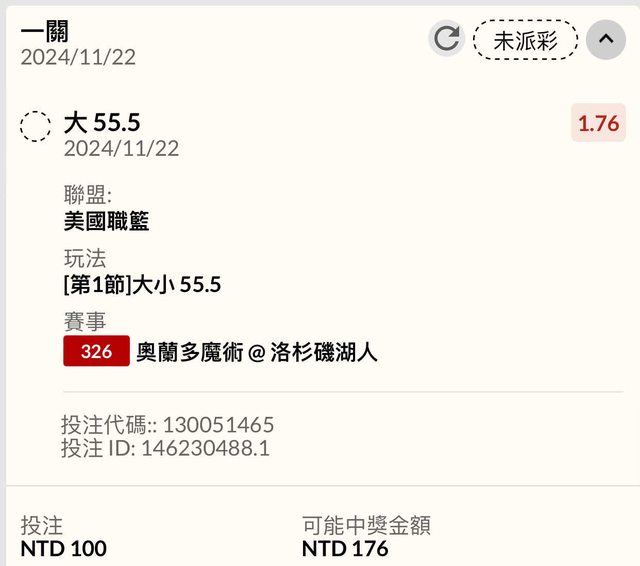 ※ 文章網址: https://www.ptt.org.tw/SportLottery/M.1732235580.A.E45