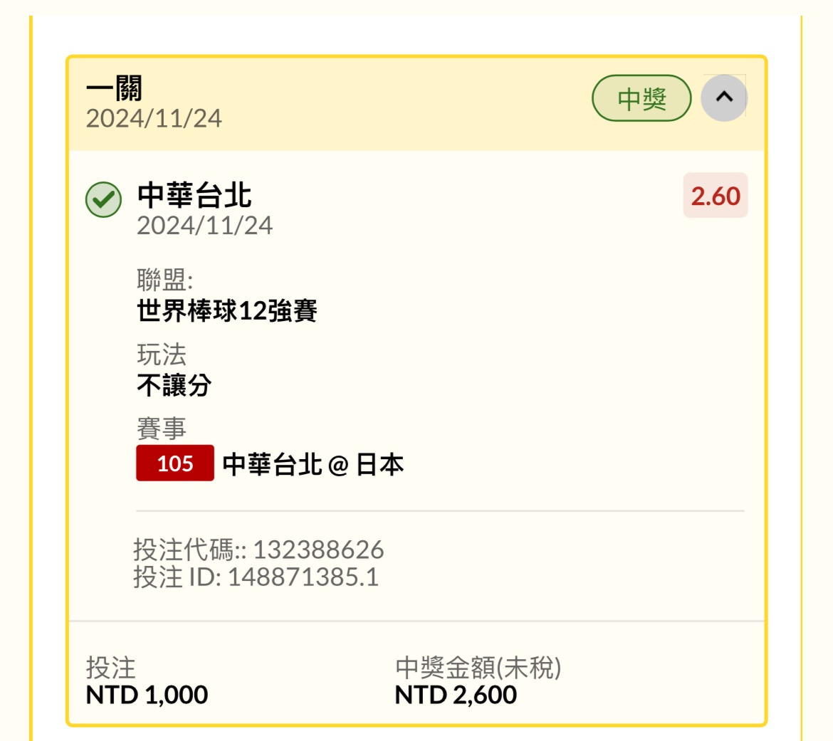 推 freak6910: 同路!賽前2.55、場中2.6都買到了,贏 27.51.11.254 11/24 22:04