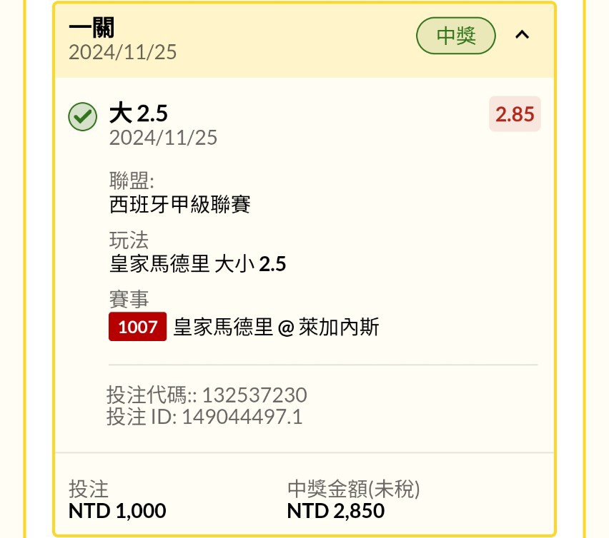 推 ericboy0225: 皇馬大1.5 1.42爛賠收 114.36.18.161 11/25 02:56