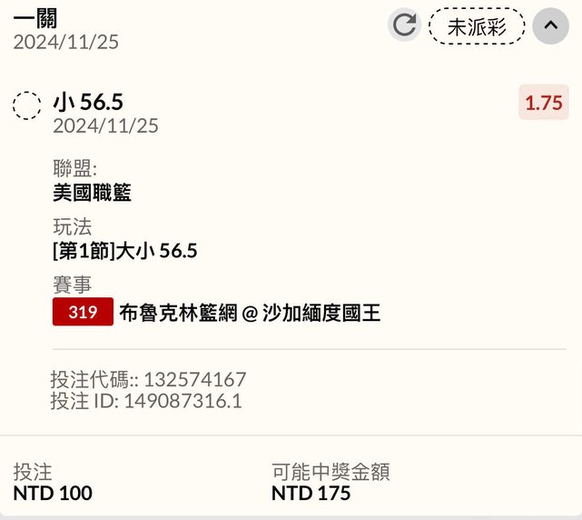 ※ 文章網址: https://www.ptt.org.tw/SportLottery/M.1732498545.A.101