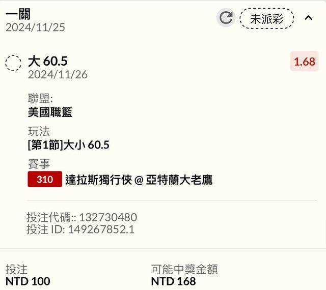 ※ 文章網址: https://www.ptt.org.tw/SportLottery/M.1732550424.A.D0A