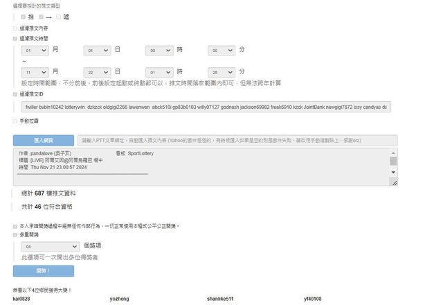 : 這邊會請小幫手幫我抽50份十一月份麥心意分享給大家,希望大家不要只專注在運彩,也別忘記工作跟家人,謝謝大家。
