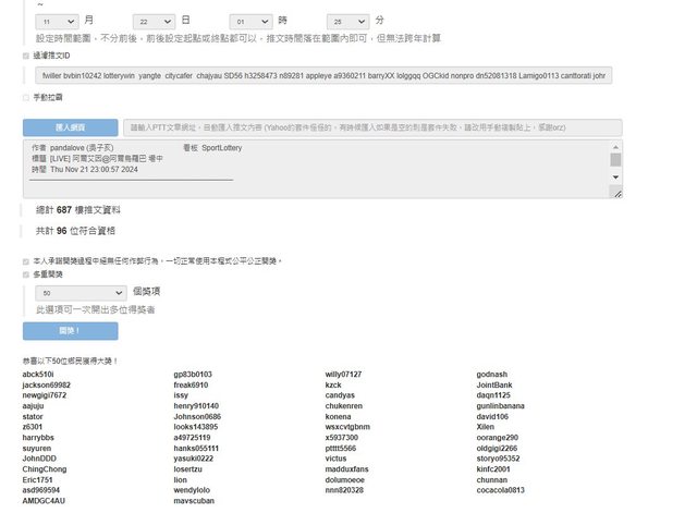 截止時間為 01:25 過濾分身重複參與
