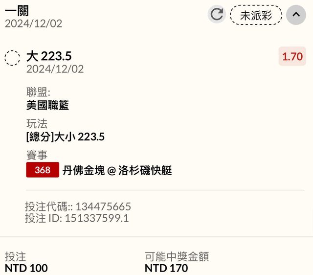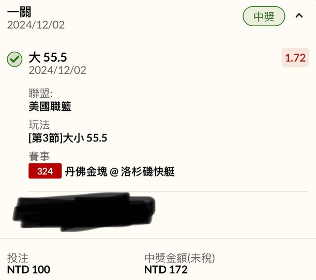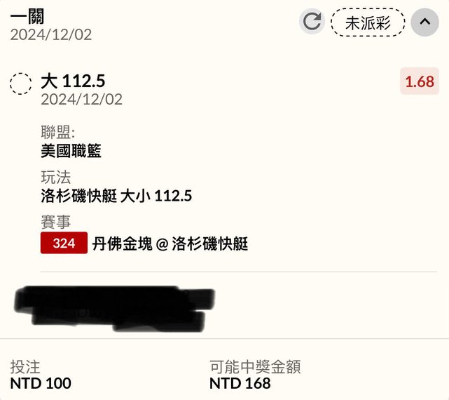 ※ 文章網址: https://www.ptt.org.tw/SportLottery/M.1733100526.A.A4B