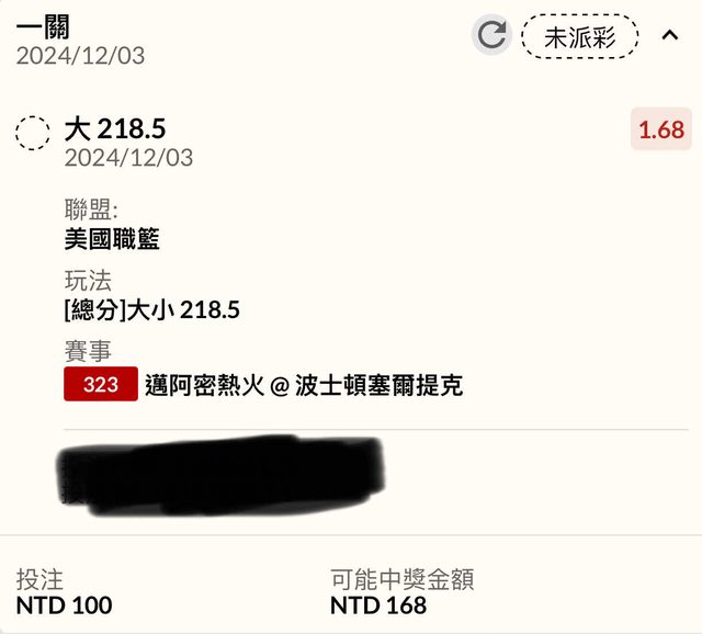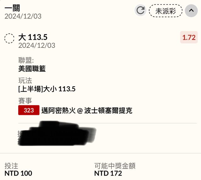 ※ 文章網址: https://www.ptt.org.tw/SportLottery/M.1733180097.A.90B