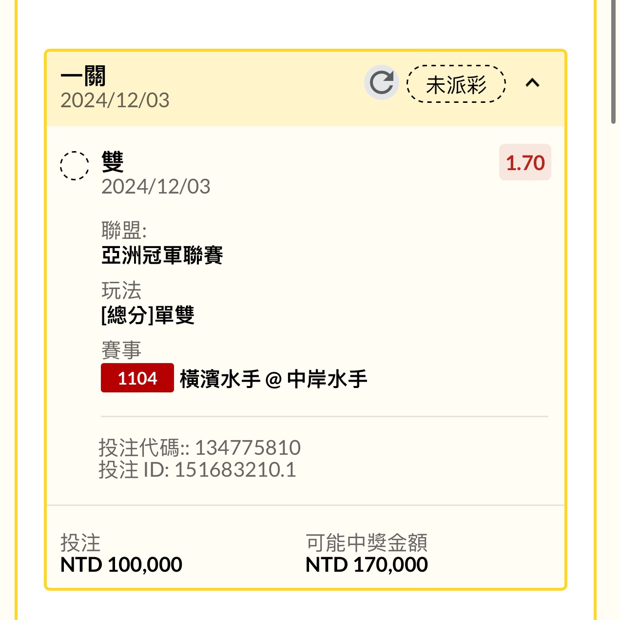 → frank402: 上半橫濱0.5大 爛賠收 114.36.240.99 12/03 16:09