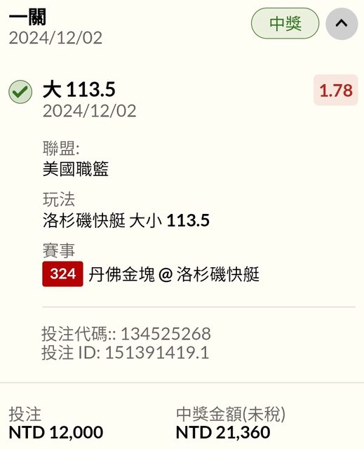 ※ 文章網址: https://www.ptt.org.tw/SportLottery/M.1733537337.A.519