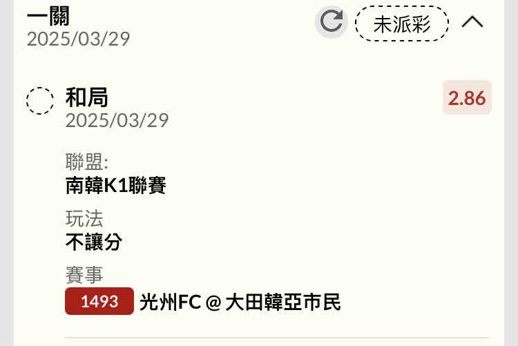 光州FC 1 - 1 大田韓亞市民 34' 光州FC HT-- 1:0 -- 62' 大田韓亞市民 FT-- 1:1 -- 南韓K1 -- ※ 發信站: 批踢踢實業坊(www.ptt.org.tw), 來自: 125.230.25.156 (臺灣) ※ 文章網址: https://www.ptt.org.tw/SportLottery/M.1743233507.A.598